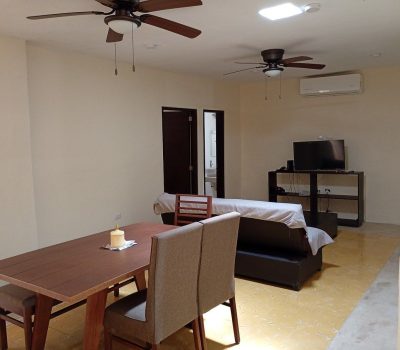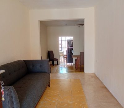 Casa en renta una planta, con espacios funcionales y bien distribuidos: sala–comedor con mobiliario incluido, recibidor que aporta privacidad y cocina equipada con estufa, refrig