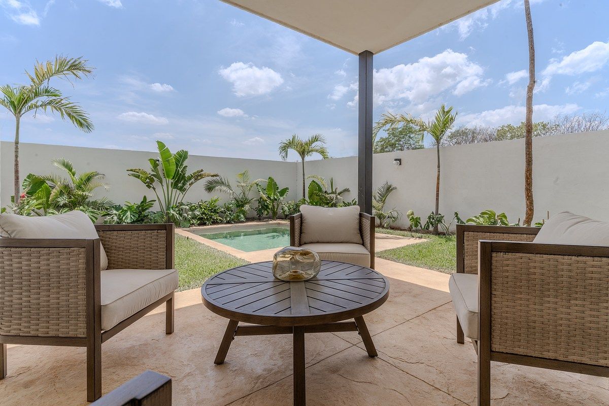 Esta casa nueva se encuentra dentro del fraccionamiento Aldoria, una privada residencial ubicada en la zona nueva de Conkal, diseñada para quienes buscan tranquilidad, confort y plusvalía al norte de Mérida.