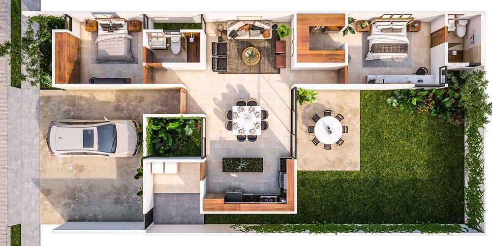 Distribución de la casa en un nivel.