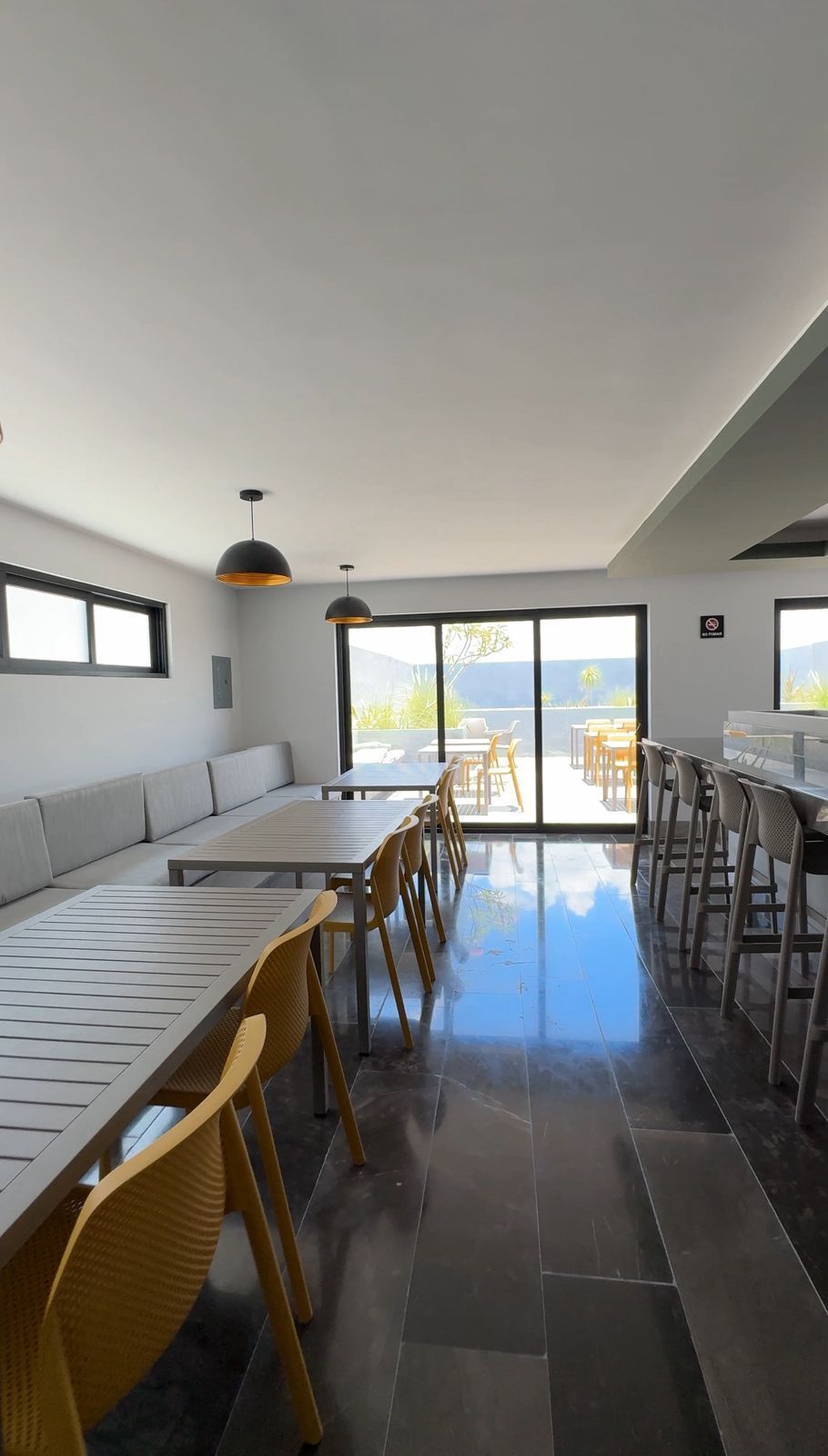 • Comedor panorámico climatizado con refrigerador, parrilla eléctrica y horno
