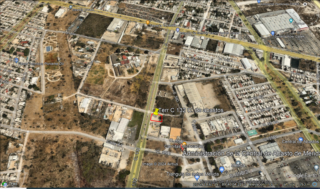 Este terreno en renta tiene salida por la av. 132 de 4 carriles y sale directo, mediante un recorrido de 6 minutos a la avenida Canek y periférico. El frente del terreno, es apropiado para el manejo de vehículos de carga con pronta salida o llegada a las carreteras nacionales.