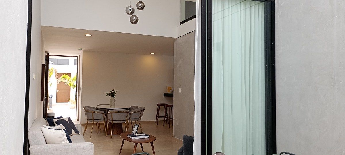Disfruta un diseño moderno con espacios pensados para convivir y vivir cómodamente: sala con doble altura que brinda amplitud y luz natural, comedor integrado, cocina con barra desayunadora, alacena, terraza y tiene la opción de construir alberca privada.