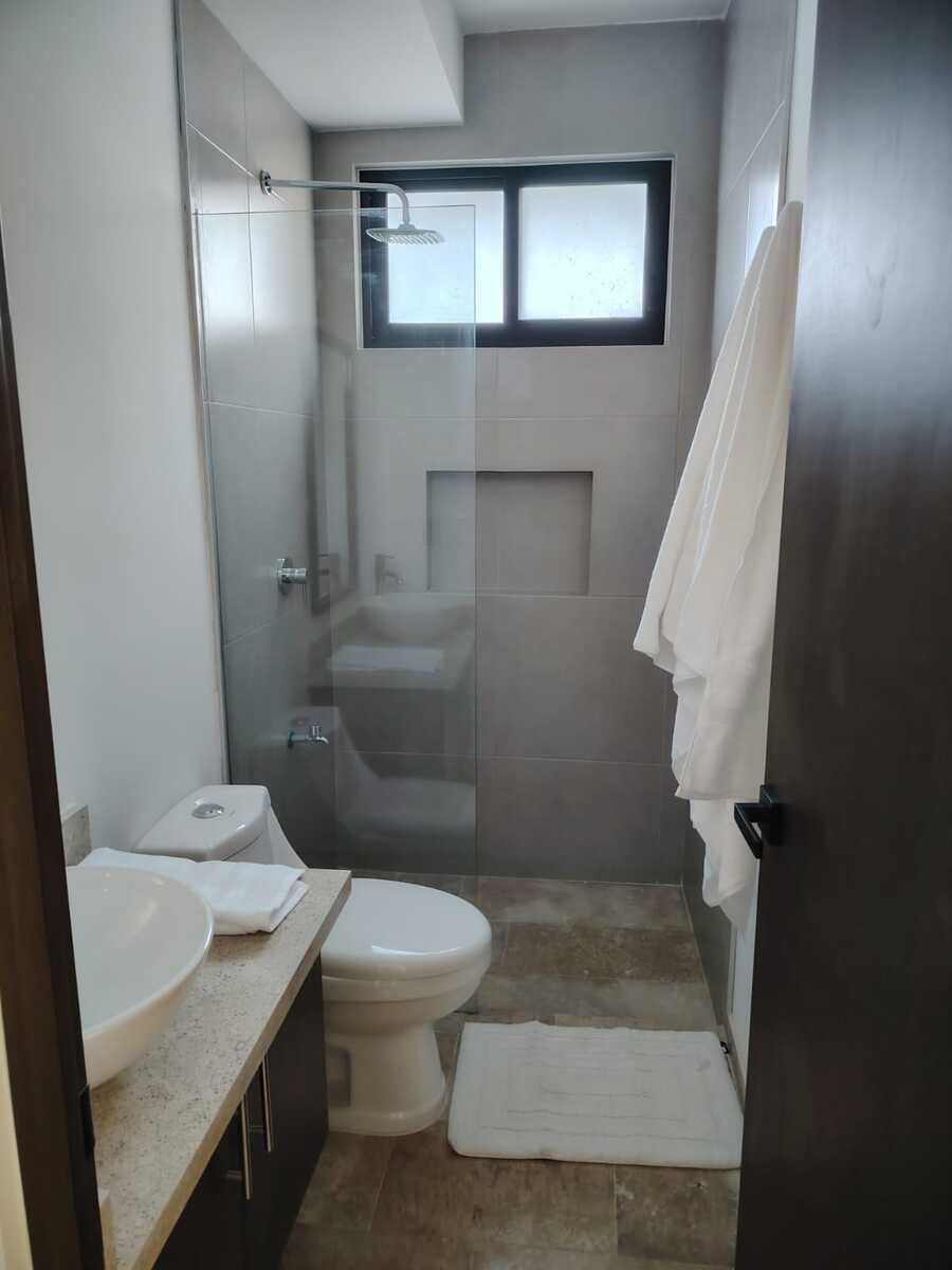 Cada torre cuenta con elevador, áreas de convivencia en el roof deck, estacionamientos protegidos por lonarias, acceso controlado y un servicio tipo boutique con concierge y seguridad 24/7.